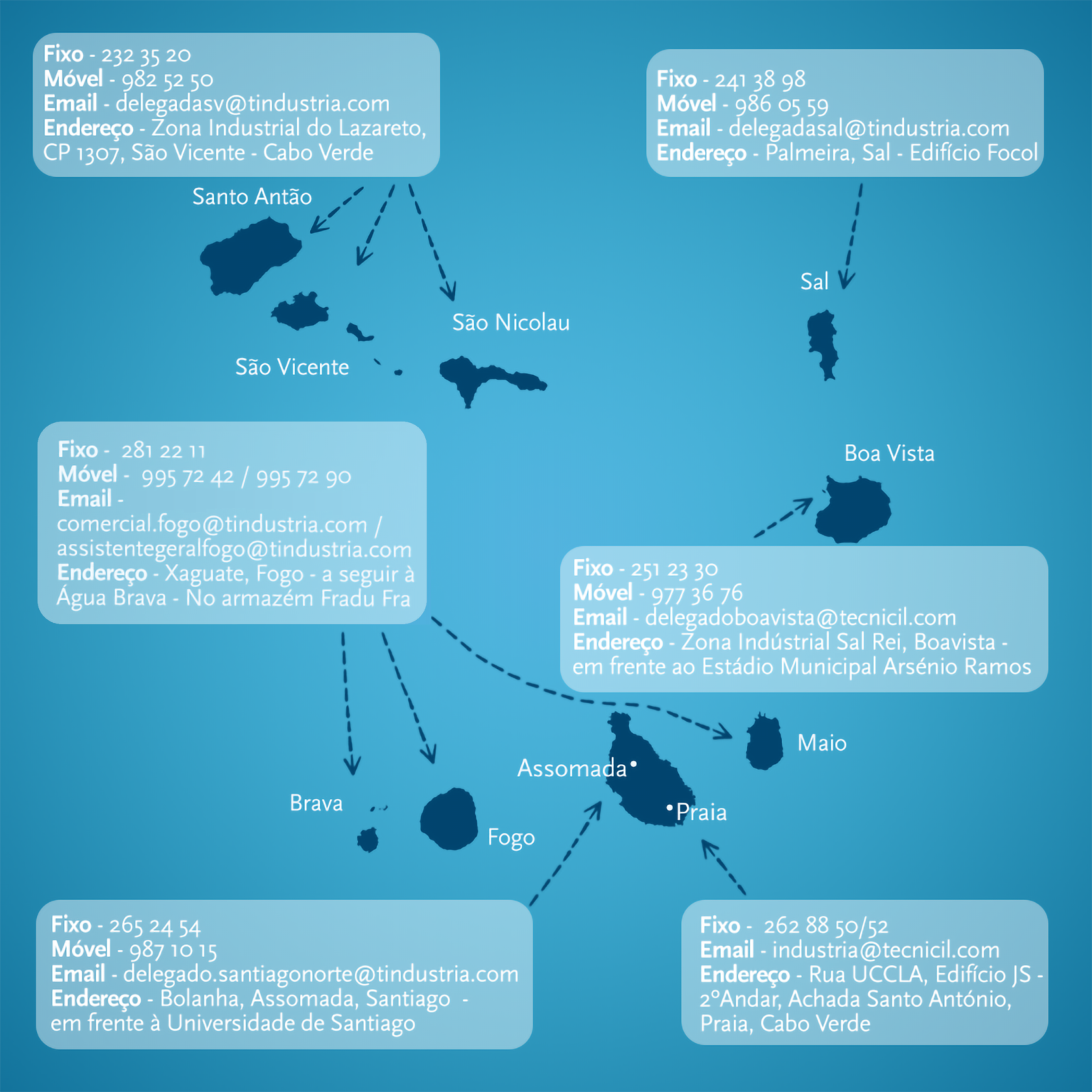 Cabo Verde, tendo nas ilhas de maior consumo, Delegação própria. Nas ilhas